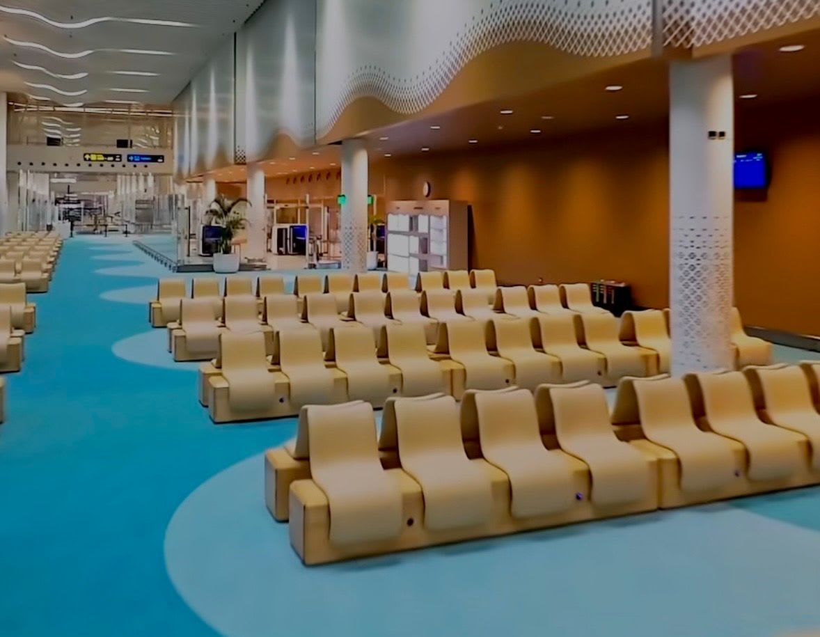 Terminal 1 is the new international terminal. It spans 78,000 square metres and is designed for a capacity of 7.5 million passengers per year — a major step up from the old terminal, which was built for roughly 1.5 million.